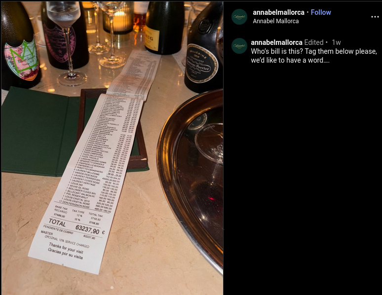 Instagram staat inmiddels vol met detectives die proberen te achterhalen wie deze gulzige kapitein is. Namen van beroemde sporters vliegen over het dek, maar niemand weet wie de Dom Perignon-piraat werkelijk is. Eén ding is zeker: deze avond zal nog lang rondzingen in de taveernes van Mallorca.